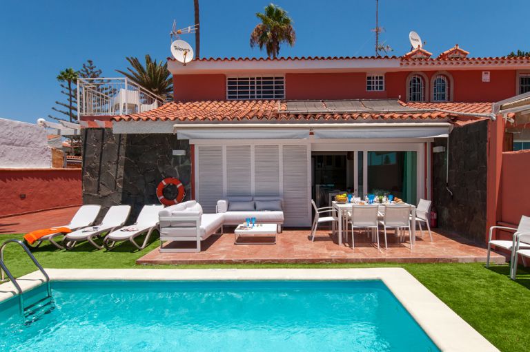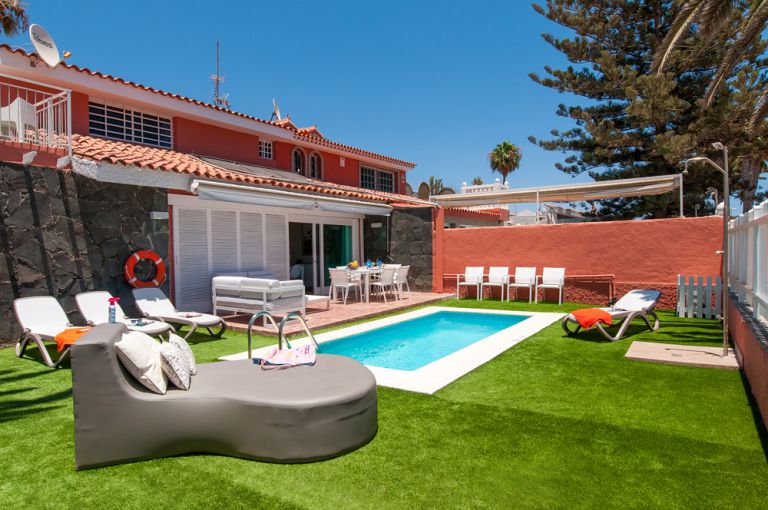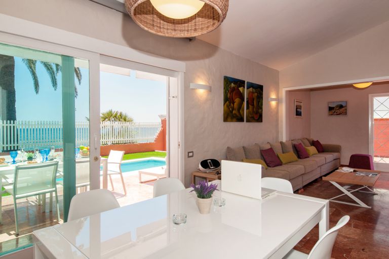 | Die geräumige und freistehende Villa liegt direkt am Strand zwischen Playa del Ingles und San Agustin und ist mit 240 qm Wohnfläche für bis zu 10 Personen geeignet. Ideal für einen ruhigen Familienurlaub am Strand. |