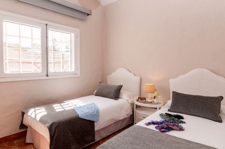 | Die Villa bietet insgesamt 5 Schlafzimmer, zwei Schlafzimmer mit Doppelbetten, zwei Schlafzimmer mit Einzelbetten und ein Schlafzimmer mit Etagenbett. Die 4 Badezimmer sind jeweils mit Duschen ausgestattet. |