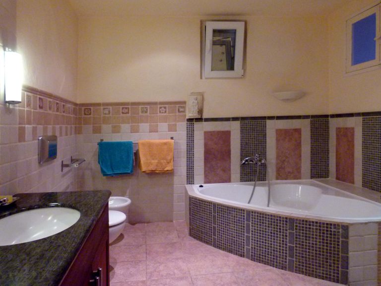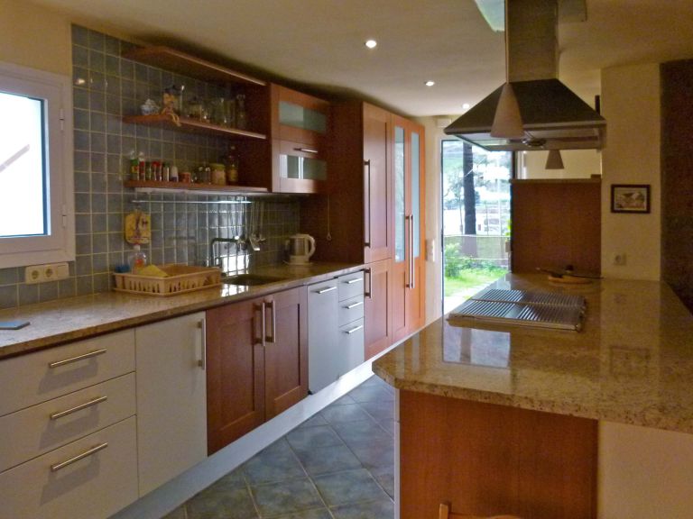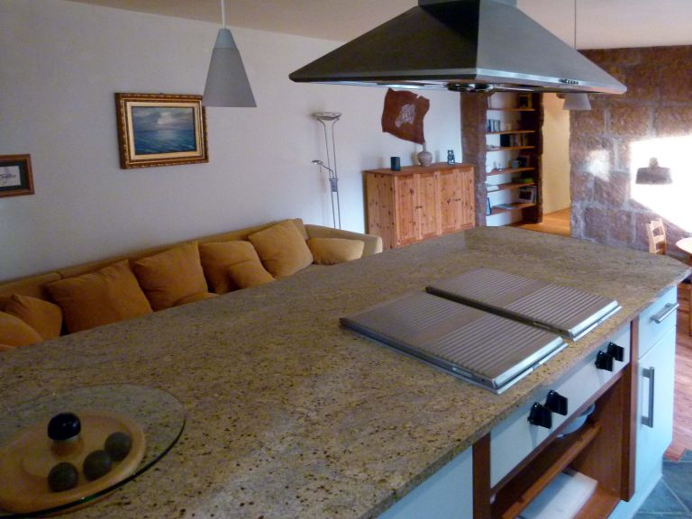 | Es handelt sich um eine italienische Kirschholzküche vom Fabrikat Gatto mit Granitarbeitsplatten in Kaschmirgold und Elektrogeräten von Gaggenau, Siemens und AEG. Das klassische Badezimmer mit Eckbadewanne, Dusche, freihängendem WC und Bidet ist aufwendig mit Mosaik- und Künstlerfliesen versehen. Darüber hinaus verfügt das Ferienhaus über zwei Doppelschlafzimmer (160 x 200 bzw. 220 x 200 durch beidseitige Verlängerung der Matratze), einen Korridor mit Arbeitsecke, einen Abstellraum und einen Geräteschuppen. Der Garten umfaßt ca. 75 qm, die Terrasse ca. 20 qm und die Dachterrasse ca. 100 qm. |