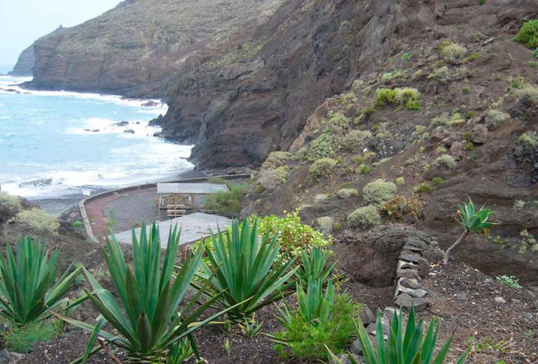 | Einer der schönsten Strände der Insel, die Playa La Caleta, liegt nicht weit entfernt. Das Bananenbauerndorf Hermigua liegt in einem landschaftlich reizvollen Tal, ca. 20 Kilometer nordöstlich der Hafenstadt San Sebastian de La Gomera. | ||