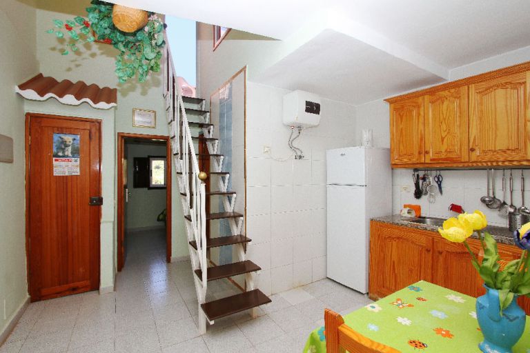 | Das Studio verfügt über einen kombiniertem Wohnschlafraum mit Küchenecke und Bad mit Dusche. Die Ferienwohnung bietet 2 Schlafzimmer, Küche und Badezimmer mit weißer Sitzbadewanne. Von der Küche aus führt eine Treppe auf die teilweise überdachte Dachterrasse, die mit Gartenmöbeln ausgestattet ist. |