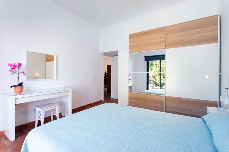 | Die Ferienwohnung verfügt über 3 Schlafzimmer, jeweils mit geräumigen Kleiderschränken, Ablageflächen, sowie Steckdosen und zusätzlicher Beleuchtung in Bettnähe. Ein Schlafzimmer verfügt über 2 Einzelbetten. Die zwei weiteren Schlafzimmer verfügen über Doppelbetten, darüber hinaus ist das Hauptschlafzimmer zusätzlich mit einem kleinen Tisch mit Hocker ausgestattet. | ||