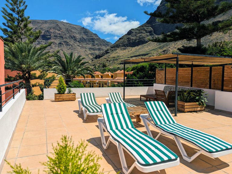 | Die Ferienwohnung befindet sich auf demselben Grundstück wie die Ferienwohnung GO - 040 in Valle Gran Rey. Genießen Sie Ihren Urlaub in diesem modernen Domizil mit bestem Panoramablick sowohl von der eigenen Dachterrasse als auch vom eigenen Gartenbereich aus. Mit 3 Schlafzimmern und 2 Bädern bietet das Objekt Platz für bis zu 6 Personen. |