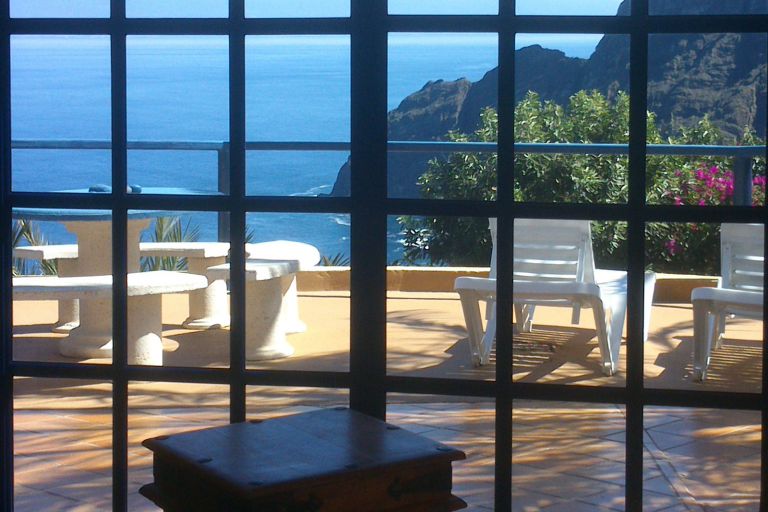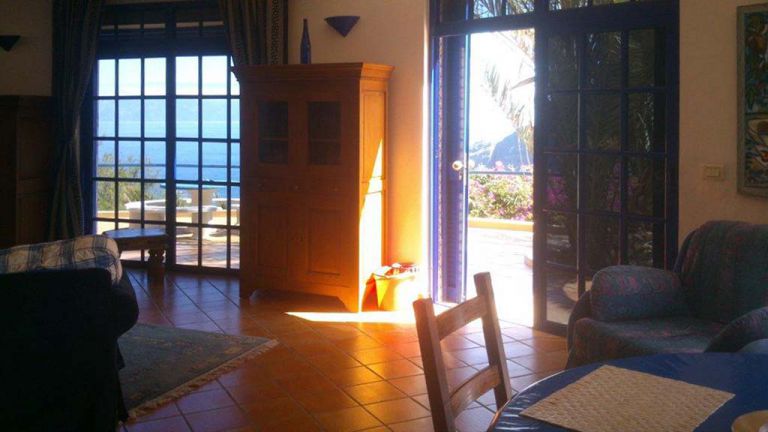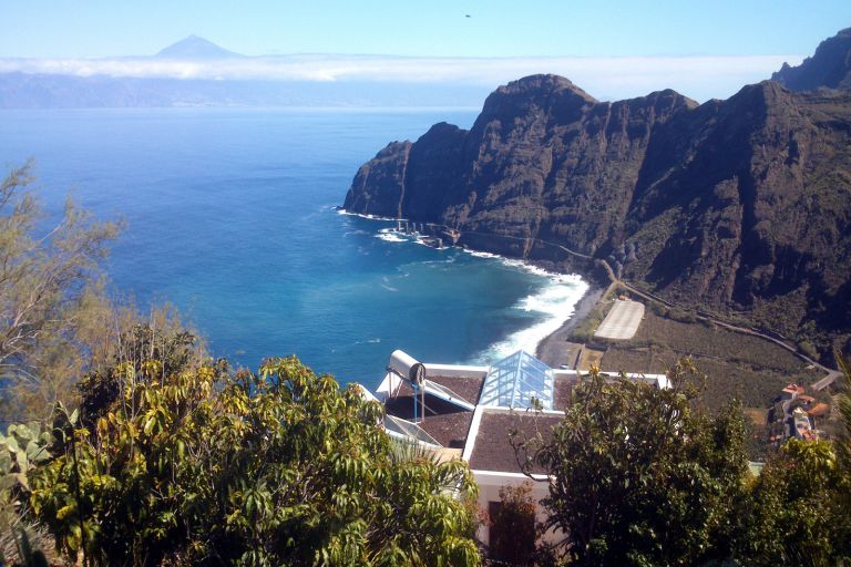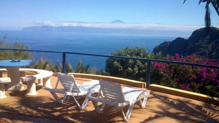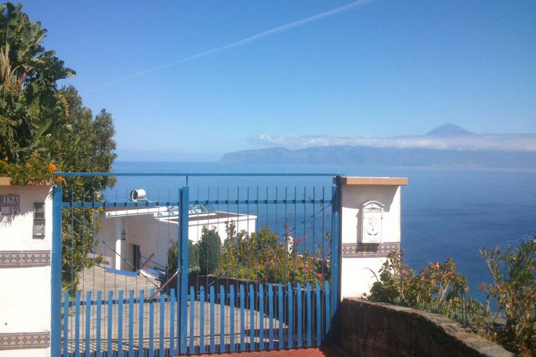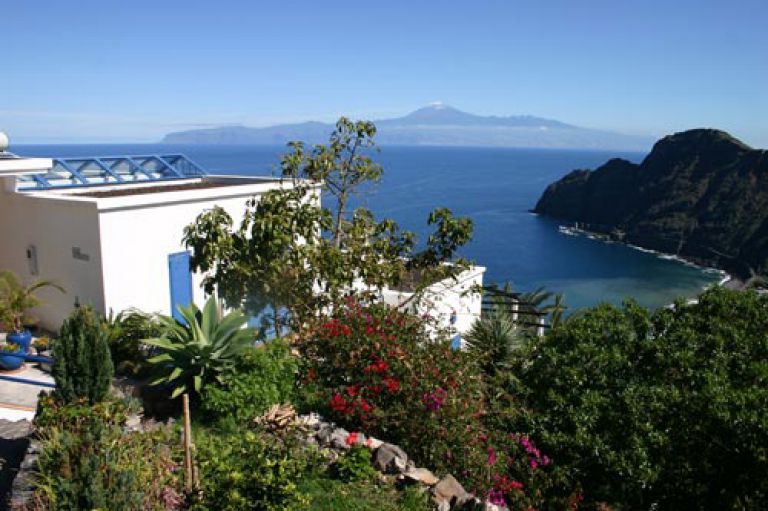 | Von dort aus genießen Sie einen freien Ausblick auf das Meer und die Nachbarinsel Teneriffa mit dem imposanten, 3.715 Meter hohen Teide. Wenn Sie absolute Ruhe suchen und das Meeresrauschen mögen, dann sind Sie hier genau richtig. Aber auch wenn Sie die Herausforderung suchen, steile Berghänge zu erklimmen, ist dies genau die richtige Adresse für Sie. Das Tal von Hermigua ist ausgesprochen grün, da sich Bananenplantagen, gemischt mit Obstbäumen und Gemüse, in unzähligen Terrassen die Hänge hinaufziehen. Die Ferienwohnung ist Teil eines Privathauses ohne direkte Nachbarn. Sie haben einen unabhängigen Zugang zur Wohnung, der über das Grundstück führt. Auf dem Anwesen befindet sich ein kostenfreier Parkplatz. Bitte beachten Sie, dass der Zugang zur Wohnung über ca. 50 Treppenstufen führt. |