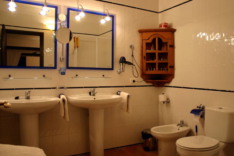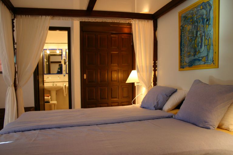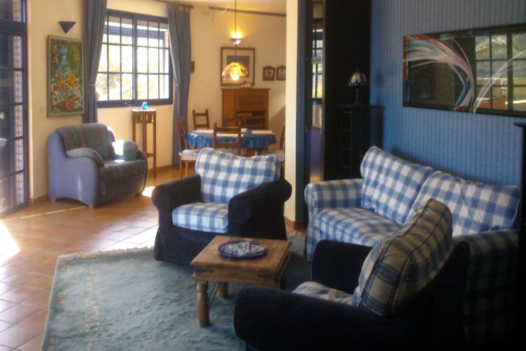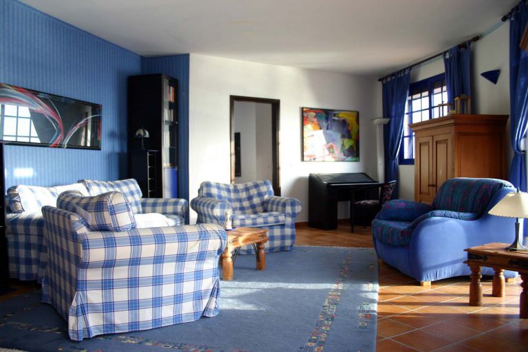 | Die Couch und ein Sessel dienen als Schlafmöglichkeit für eine dritte Person. Die Waschmaschine befindet sich in einem Nebenraum. Vom Schlafzimmer mit Doppelbett genießen Sie, wie auch aus den anderen Räumen, eine traumhafte Aussicht auf den Atlantik und auf die Nachbarinsel Teneriffa. Das ensuite Badezimmer ist mit einer Dusche, zwei Waschbecken, WC und Bidet ausgestattet. | ||