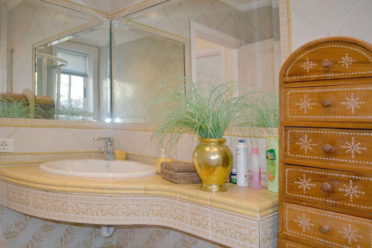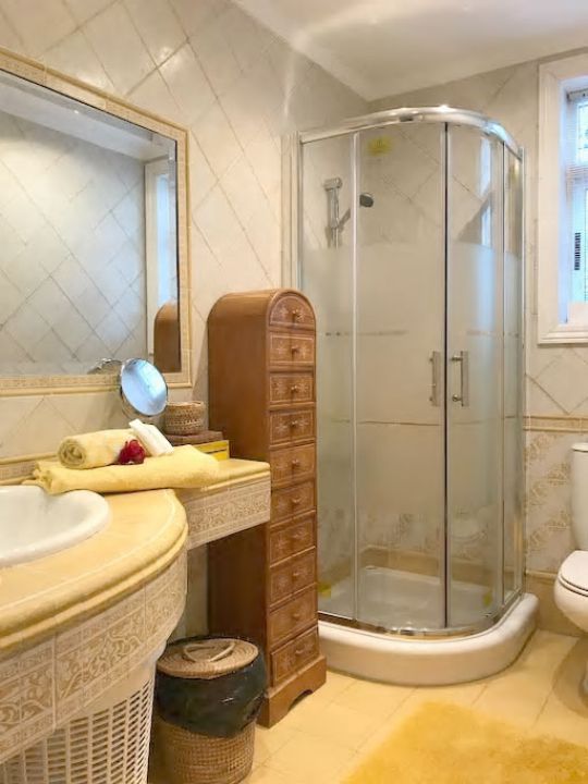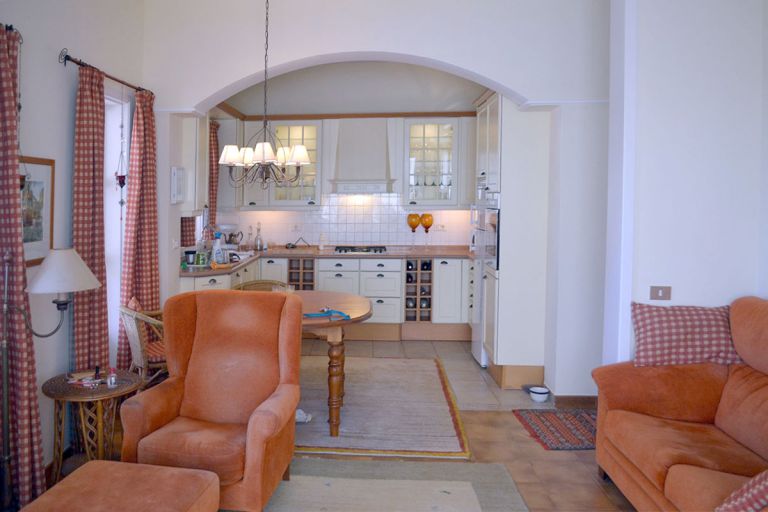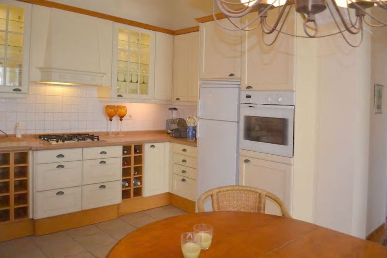 | Die gut ausgestattete offene Einbauküche verfügt über einen Backofen, Geschirrspüler, Kühlschrank, Toaster, Mixer, Kaffeemaschine und weitere Haushaltsgeräte. Ein Waschmaschine und ein Bügeleisen sind ebenfalls vorhanden. |