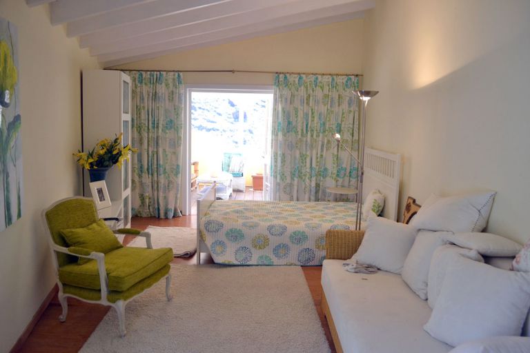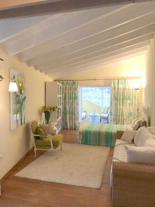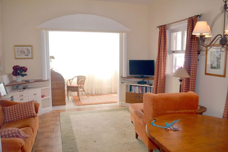 | Das Finca Haus verfügt über ein großzügiges Wohnzimmer mit Couchgarnitur, SAT-TV mit Flachbildschirm und einen gut funktionierenden Internetzugang über Wlan. Von hier aus gelangen Sie auf die davor liegende überdachte Terrasse mit Gartenmöbeln. Darüber hinaus steht Ihnen noch eine weitere Terrasse zur Verfügung. |
