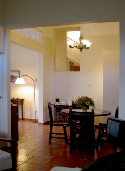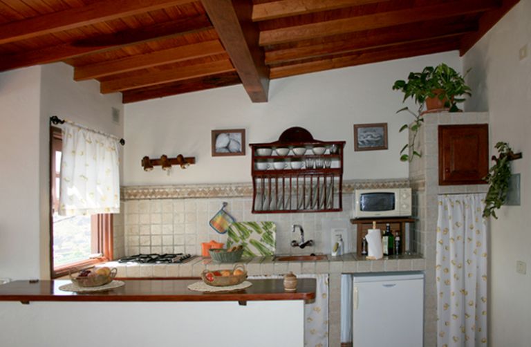 | In der oberen Ebene befinden sich ein Schlafzimmer mit einem Doppelbett (180 x 200), ein Duschbad, ein Wohnesszimmer und die Küche mit einem vierflammigen Gasherd, Mikrowelle, Mixer, Toaster und Saftpresse. Von hier aus gelangen Sie sowohl auf die schöne Terrasse als auch in den großen Aussenbereich. Eine private Garage steht zur Verfügung. |