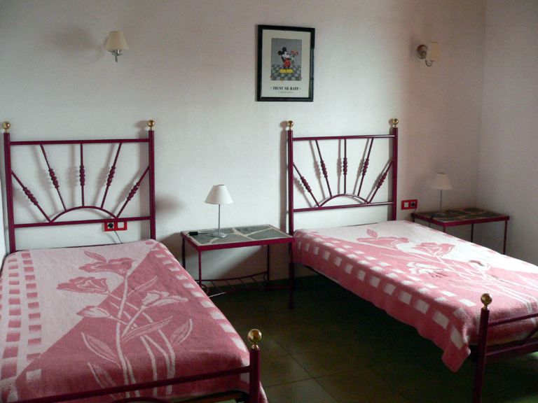 | Rechts und links des Wohnbereichs befinden sich jeweils zwei Schlafzimmer, drei mit einem Doppelbett (150 x 200) eines mit zwei Einzelbetten (100 x 200). | ||