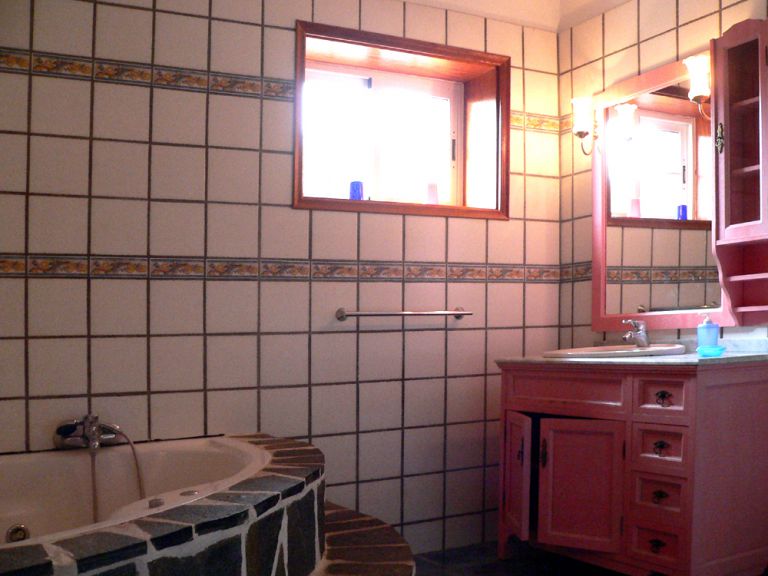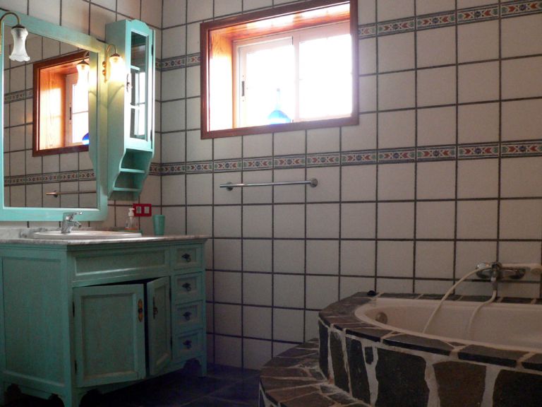 | Beide Badezimmer sind mit einer großen Eckbadewanne und hübschen Holzmöbeln ausgestattet. Eine Waschmaschine, Bügeleisen und -brett, Kinderbett und Kinderstuhl sind vorhanden. | ||