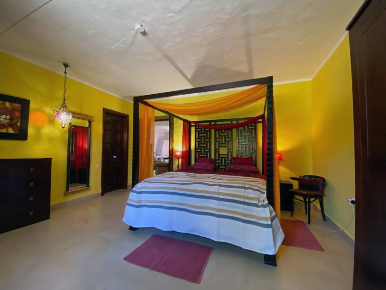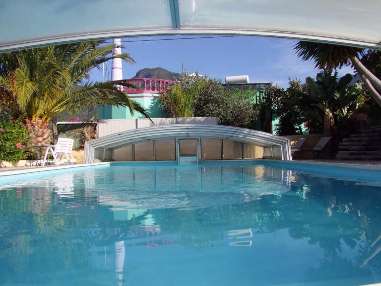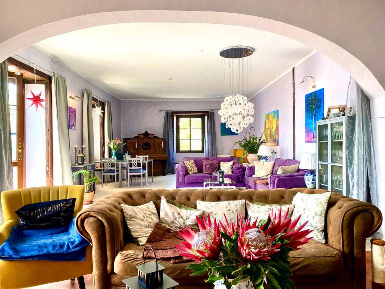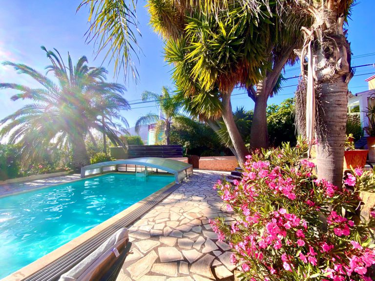 | Das geräumige Ferienhaus bietet einen 65 qm großen beheizten Pool umgeben von einem gepflegten Gartengelände. Darüber hinaus gibt es einen Innenhof, einen Wintergarten und eine Terrasse. Der komplette Dachbereich des Hauses bietet einen traumhaften Rundblick auf das Meer und die Berge. Die Lage des Ferienhauses ist nicht nur ruhig, sondern auch zentral, so erreichen Sie Restaurants, Cafes, Bars und Supermercados in ca. 8 bis 10 Minuten zu Fuß. |