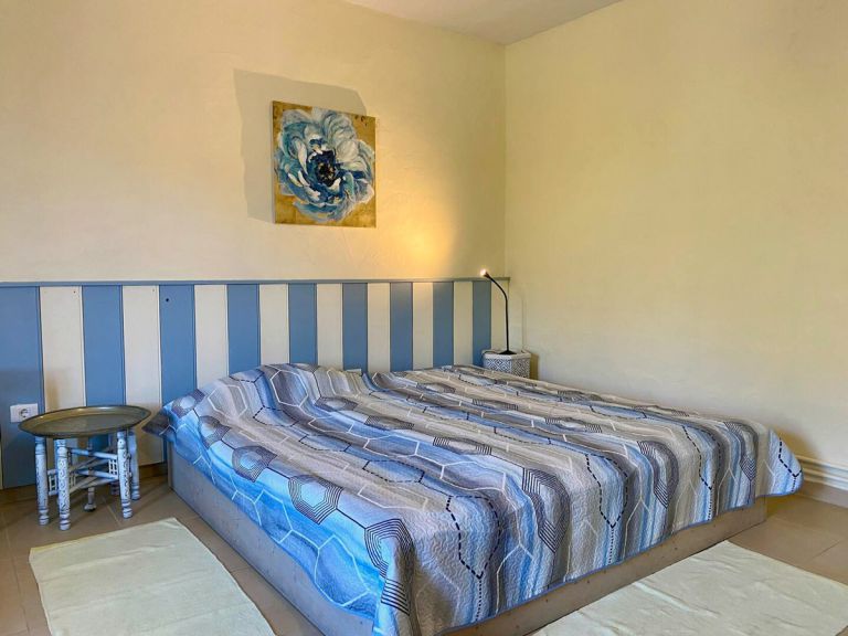 | Das mit viel Liebe zum Detail eingerichtete Ferienhaus verfügt über zwei Schlafzimmer, ein großes Badezimmer mit Dusche und Wirlpoolbadewanne sowie einem Gäste-WC. Ein Schlafzimmer verfügen über ein Doppelbetten (180 x 200). Das zweite Schlafzimmer verfügt über ein Doppelbett (2 x 90 x 200) und ein Einzelbett, einen Kleiderschrank, Kommode und einen Schreibtisch. Daher kann dieser Raum auch gut als Arbeitszimmer genutzt werden. Auch in diesem Raum haben Sie, wie in der gesamten Villa, eine Wlan Verbindung. |