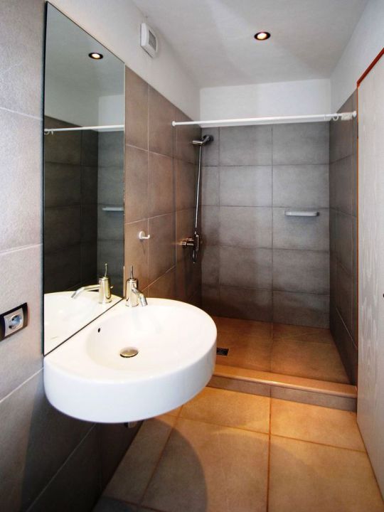 | Das große Bad ist mit einer Dusche, Doppelwaschbecken, WC und Bidet ausgestattet, das zweite und kleinere Bad mit Dusche, Waschbecken und WC. | |||||
