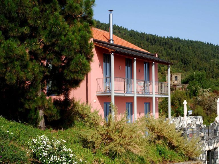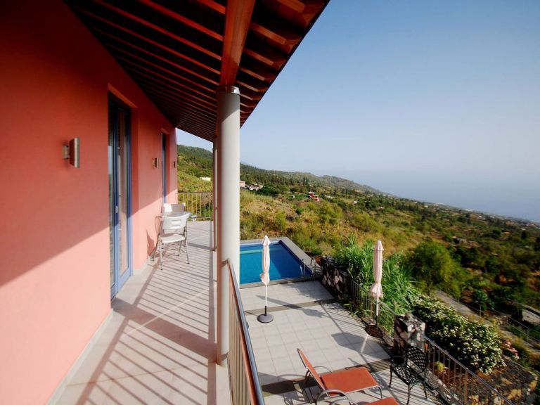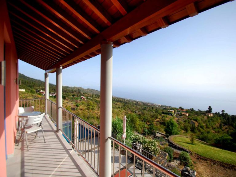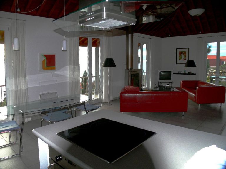 | Das exklusive Ferienhaus mit sehr geschmackvoller Inneneinrichtung und großzügigen Terrassen liegt in ruhiger Alleinlage, am Südrand der Ortschaft Tijarafe, umgeben von einem parkähnlichen Garten mit Blumen, blühenden Sträuchern auf einem kleinen Hügel mit herrlichem Meerblick. Mit ca. 120 qm Wohnfläche ist das Ferienhaus für bis zu 3 Personen geeignet. Das modern und exklusiv eingerichtete Ferienhaus verfügt über eine kanarische Dachkonstruktion, die dem Ferienhaus eine besondere Wohnatmosphäre verleiht. |