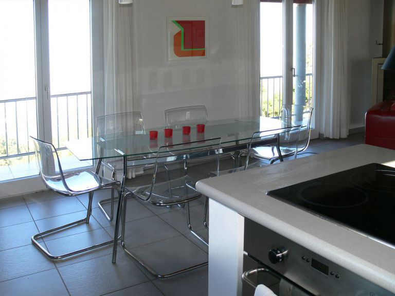 | Die integrierte offene Küche ist mit Cerankochfeld, Backofen, Mikrowelle, Toaster, Geschirrspüler und Kühlgefrierkombination ausgestattet. | |||||