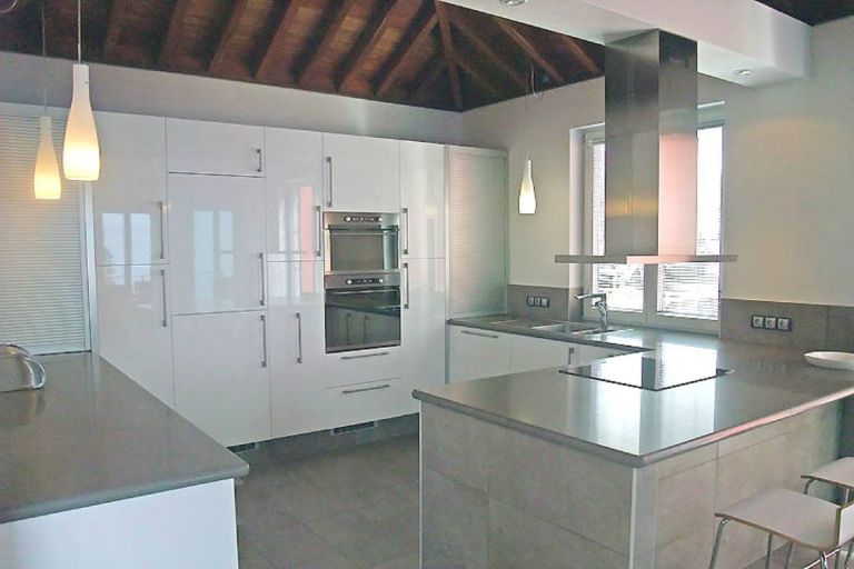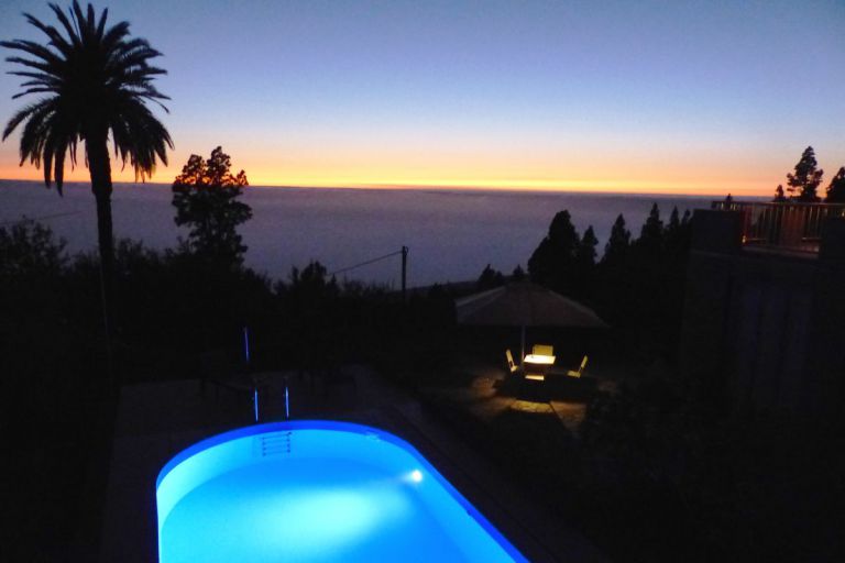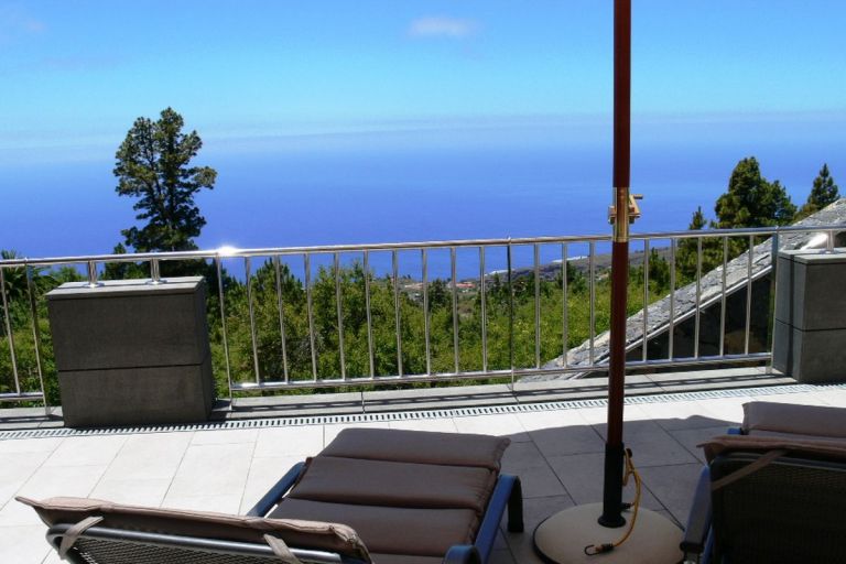 | Die beiden großen Terrassen sind mit Gartenmöbeln, Sonnenliegen und -schirmen ausgestattet und bieten einen traumhaften Panoramablick auf den Atlantik und die bewaldeten Berge der Caldera del Taburiente. Das moderne Ferienhaus bietet eine elegante kanarische Innendachkonstruktion und raumhohe Fenster. Es wurden ausschließlich hochwertige Keramikfliesen für die Innenböden und Badezimmerwände verwendet. Auch beide Terrassen und Balkon sind mit den gleichen Fliesen versehen. Pkw Einstellplätze befinden sich vor dem Ferienhaus. | ||