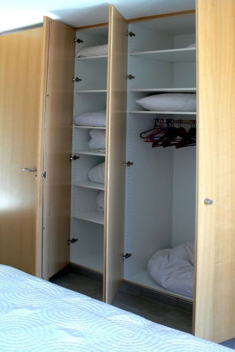| Die drei Schlafzimmer sind mit Doppelbetten (2 x 100 x 200), hochwertigen Matratzen und Lattenrosten deutscher Qualität und geräumigen Einbauschränken ausgestattet und verfügen jeweils über Zugänge zur Westterrasse. | ||