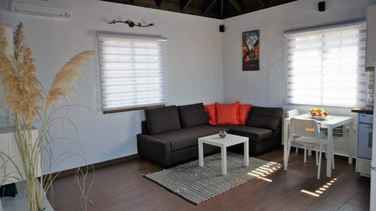| Die geräumige Wohnküche ist mit einem Schlafsofa, SAT-TV und einer Einbauküche mit Backofen, Induktionsherd, Kühl- Gefrierkombination, Mikrowelle, Toaster und Kaffeemaschine ausgestattet. Darüber hinaus verfügt das Ferienhaus über eine Klimaanlage (warm-/kalt) im Wohnraum und Schlafzimmer. | ||