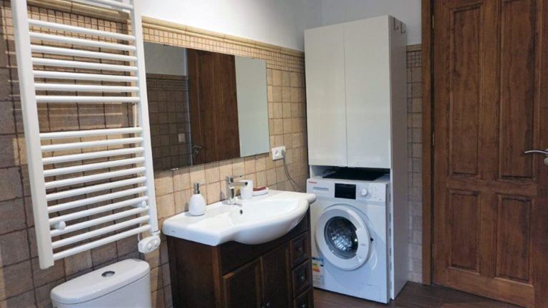 | Das Badezimmer verfügt über eine Dusche, Waschbecken und WC. Darüber hinaus steht Ihnen eine Waschmaschine und ein digital zu bedienender Heizungs-Radiator zur Verfügung. | ||