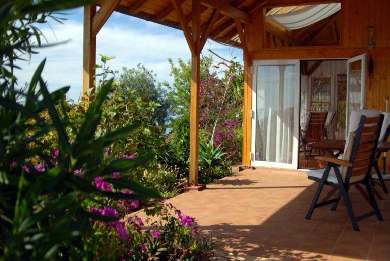 | Das Ferienhaus ist von einem Blumengarten und einem kleinen Küchenkräutern umgeben. Auf den Wiesen unterhalb des Hauses wachsen Orangen und Zitronenbäume. | ||