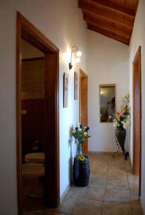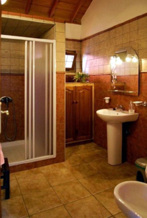 | Das Badezimmer verfügt über Dusche, Waschbecken, Bidet und WC, eine Waschmaschine und ein Fön ist ebenfalls vorhanden. Die offene Holzbalkendecke verleiht dem Badezimmer ein gemütliches Flair. | ||