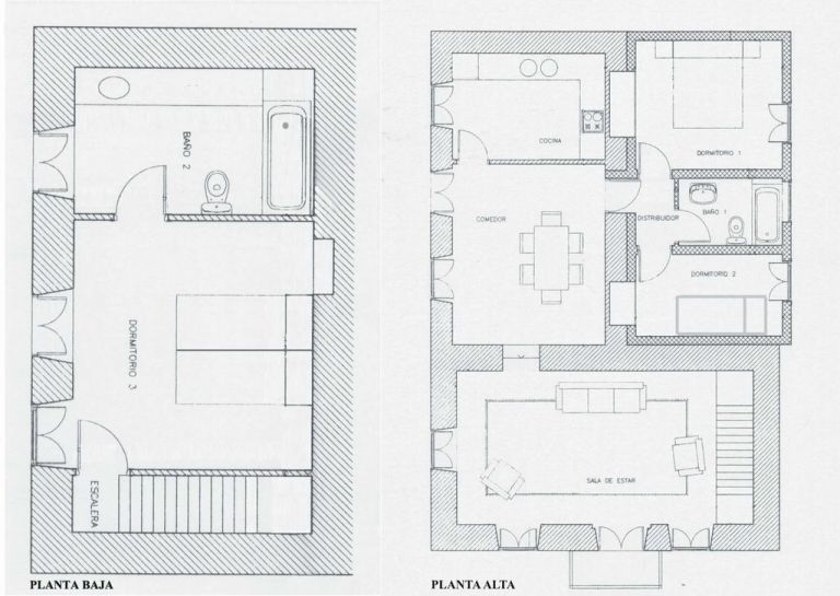 | Das Ferienhaus verfügt über drei geräumige Schlafzimmer mit einem Doppelbett, zwei Einzelbetten bzw. einem Einzelbett. Die beiden Badezimmer sind mit Dusche bzw. Badewanne, WC und Waschbecken ausgestattet. | ||