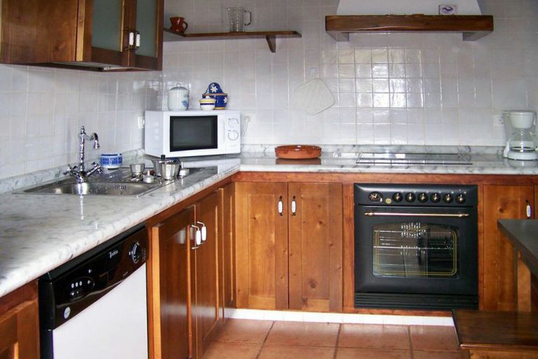 | Die separate Küche neben dem Esszimmer ist mit allen technischen Finessen wie 4-Platten-Cerankochfeld mit Backofen, Abzug, Mikrowelle, Kühlschrank, Geschirrspüler, Waschmaschine und diversen elektrischen Kleingeräten (Kaffeemaschine, Mixer, Toaster) ausgestattet. | ||