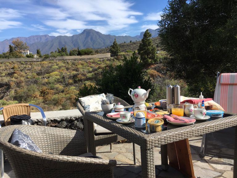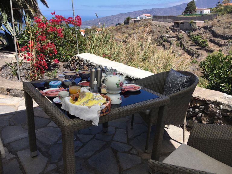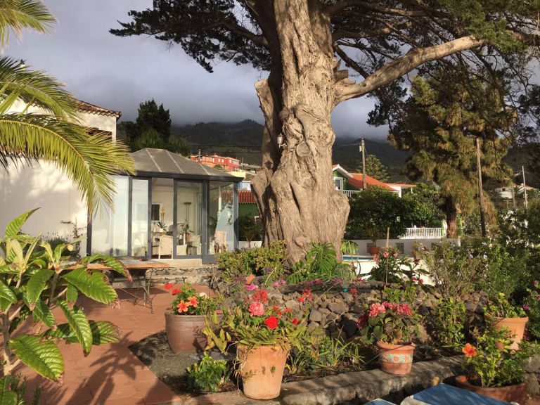 | Weitere sehenswerte Orte sind auf der Westseite sind El Paso und Tazacorte. Die Finca liegt am Ende eines kleinen Dorfes. Einen kleinen Laden erreichen Sie in 5 Minuten zu Fuß. Sie bekommen dort eigentlich alles bis auf frisches Fleisch, sogar gute Körnerbrötchen sind auf Bestellung zu bekommen. Außerdem fahren täglich ein Brotverkäufer und ein Fischverkäufer mit ihrem kleinen Verkaufswagen bis zur Finca. Den nächsten Sandstrand erreichen Sie in ca. 15 Autominuten. Diese Badebucht ist sehr sauber. Hier können Sie sich den ganzen Tag aufhalten. Es gibt hier Restaurants, Supermärkte, Toiletten und Duschgelegenheiten. |