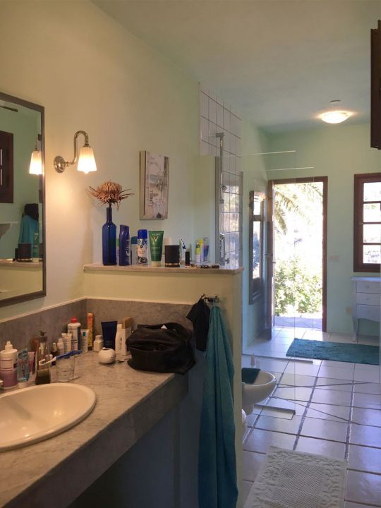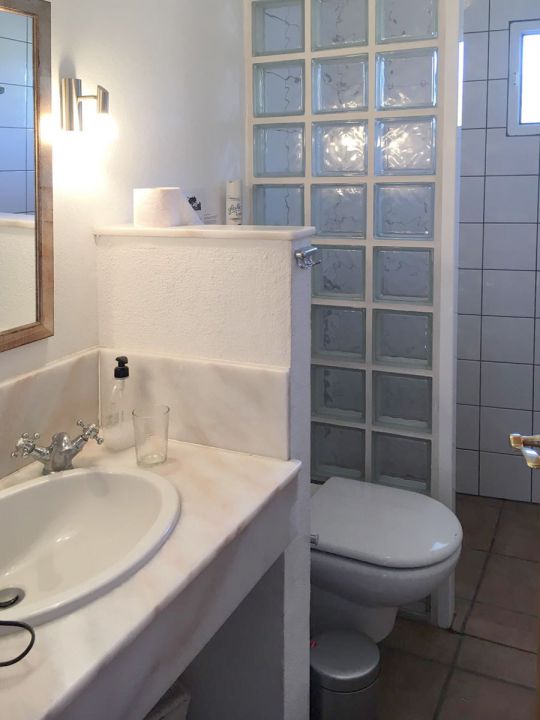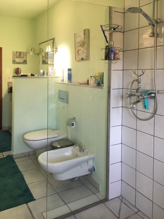 | Das Bad verfügt über eine Dusche, ein Waschbecken aus Marmor, Bidet und WC. Die Waschmaschine befindet sich im Wirtschaftsraum. |