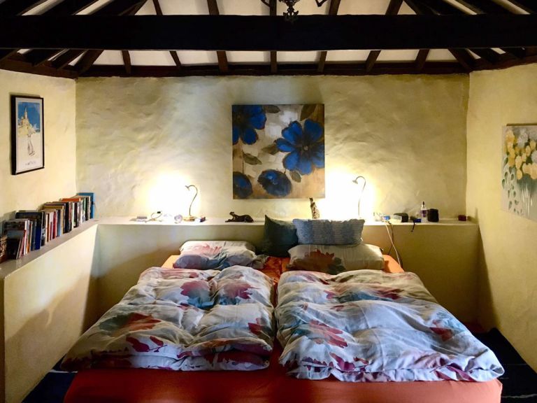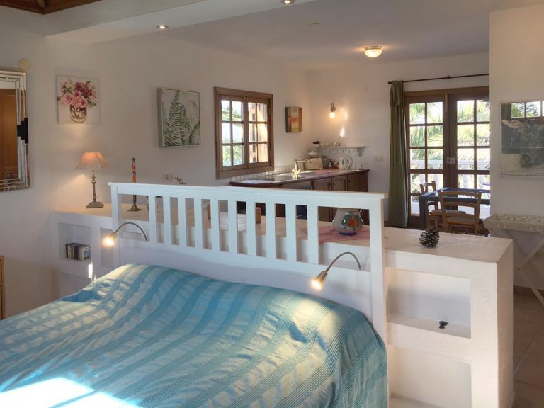 | Das ca. 40 qm große Studio in der oberen Etage des Hauses kann für zwei weitere Personen dazu gebucht werden. Es verfügt über einen kombinierten Wohnschlafraum mit kleiner Küche und ein Bad. Von hier aus gelangen Sie direkt auf die Dachterrasse des Hauses. Das Studio verfügt über einen separaten Eingang über eine Treppe, die auf der Vorderseite des Hauses liegt. |