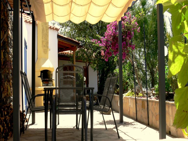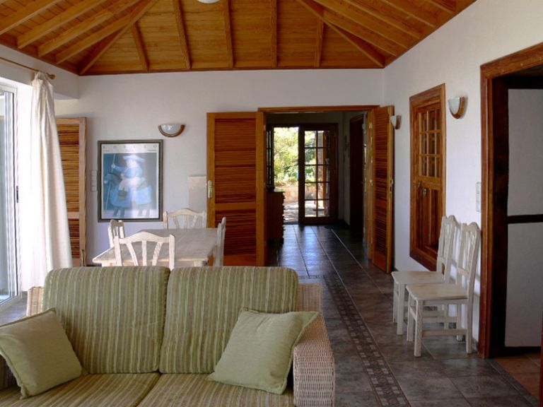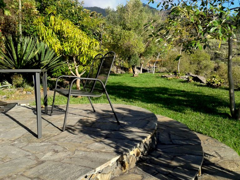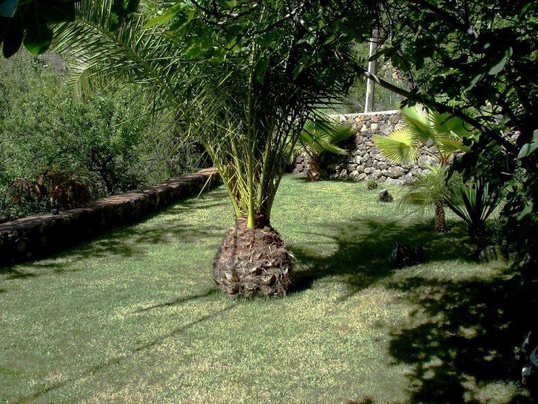 | Das Finca Haus bietet eine familienfreundliche eingeschossige Raumgestaltung und ist auch für Senioren bestens geeignet. Zum Außenbereich gehören drei Terrassen mit Gartenmöbeln, Liegestühlen und Sonnenschirmen, zwei Liegewiesen, ein kleiner Brunnen und ein 3.000 qm großer gepflegter subtropischer Garten. Darüber hinaus ein naturbelassenes Gelände mit Mandel- und Feigenbäumen, kleinen Spazierwegen und einem Außengrill. | |||||