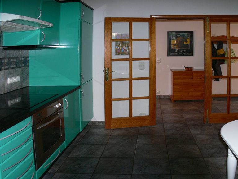| Die Küche verfügt über einen Vierplattenherd, Backofen, Kühlschrank, Gefrierschrank, Mikrowelle, Geschirrspüler, Kaffeemaschine, Heißwasserzubereiter, Toaster und eine umfangreiche Geschirr- und Besteckausstattung. Nebenan befindet sich ein Wirtschaftsraum mit Waschmaschine, Spülstein und Abstellmöglichkeiten. Pkw Einstellplätze befinden sich vor dem Haus. |