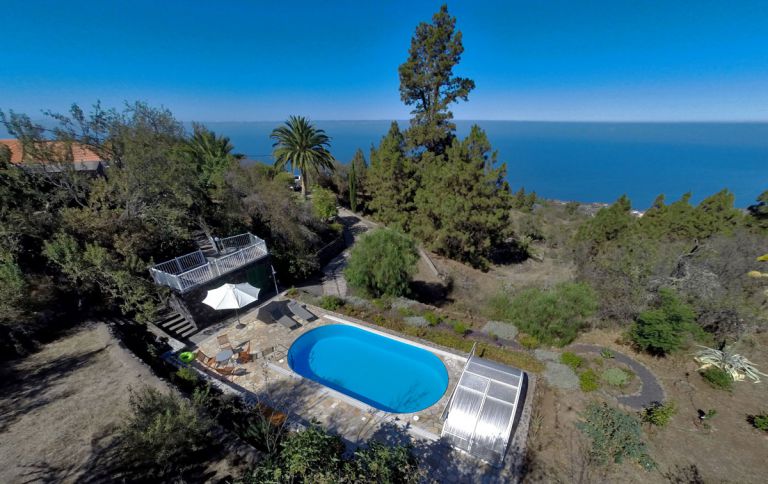 | Die exklusive Finca liegt am Ortsrand des Dorfes Tijarafe mit einem phantastischem Ausblick auf den Atlantik. Die ca. 20.000 qm große Finca in Alleinlage befindet sich am Westhang des Naturschutzgebietes. Mit einer Wohnfläche von ca. 160 qm ist die Finca für bis zu 5 Personen geeignet. |