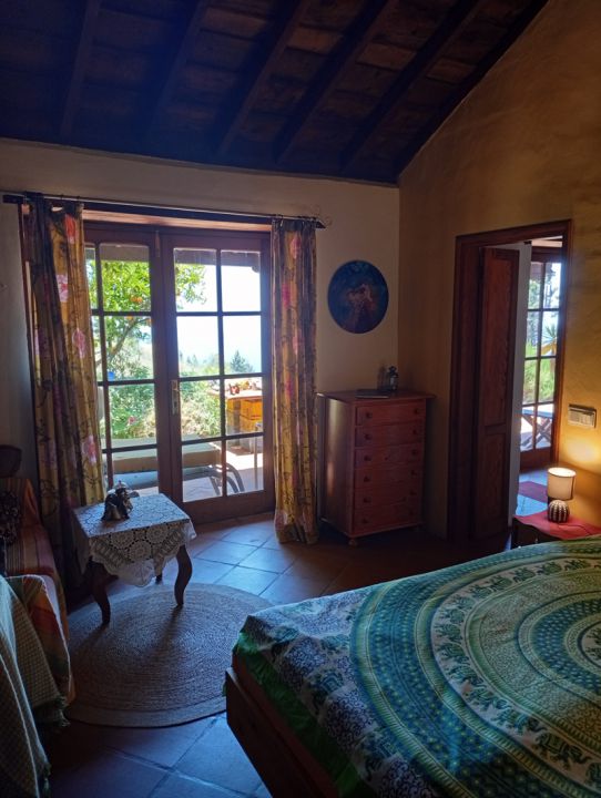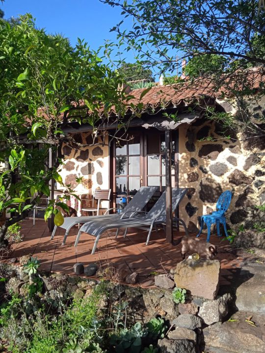 | Das typisch kanarische Ferienhaus befindet sich auf einer Orangen Finca in einer Oase der Ruhe und mitten in der Natur, ca. 3 Kilometer von Puntagorda entfernt. Das Ferienhaus ist von einem 30.000 qm großen Fincagelände umgeben, von dem Sie einen herrlichen Blick auf die Berge und auf den Atlantik mit erlebnisreichen Sonnenuntergängen genießen können. |