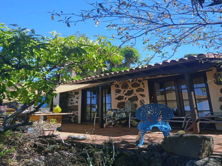 Typisch Kanarische Finca in Puntagorda auf einem Orangen Hain