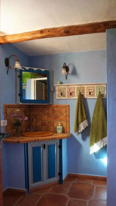 | Das ca. 100 qm große Finca Haus besteht aus einem Wohnesszimmer mit offenem Kamin (eine grosse alte Teatruhe ist gefüllt mit Brennholz für 14 Tage), einem gemütlichen Sofa, SAT-TV, Radio, Internetzugang über Wlan und einem Esstisch am Kamin mit Blick auf das Meer und die Umgebung. | |||||