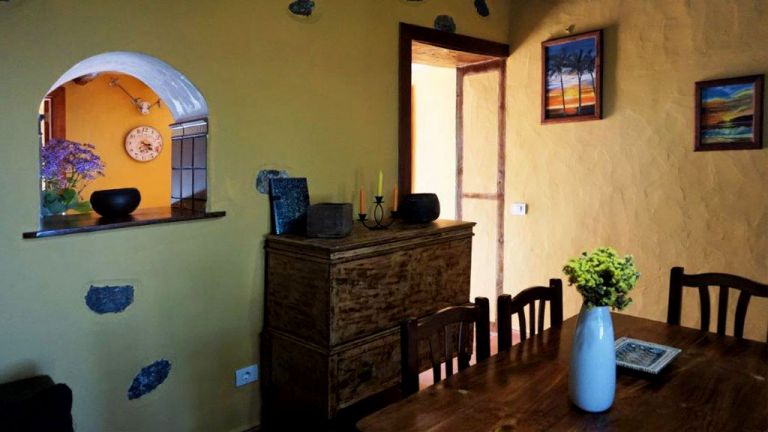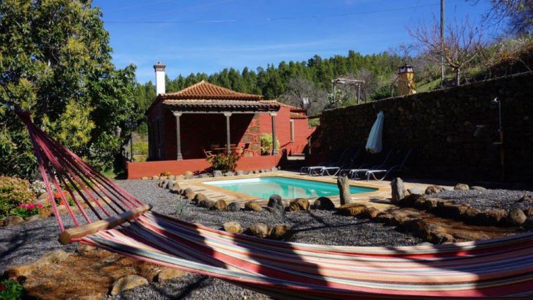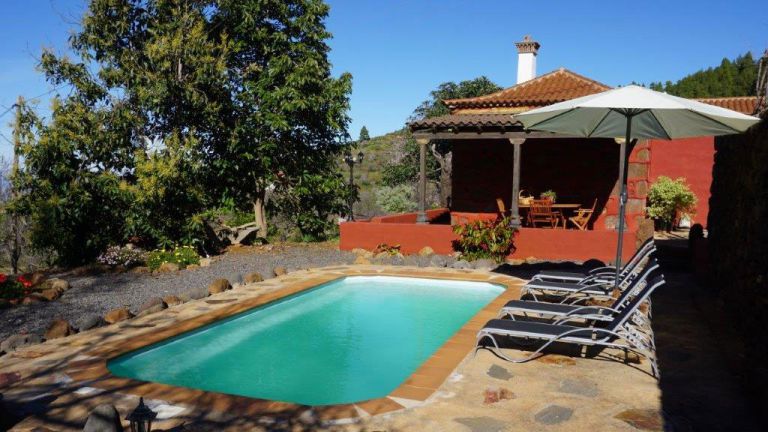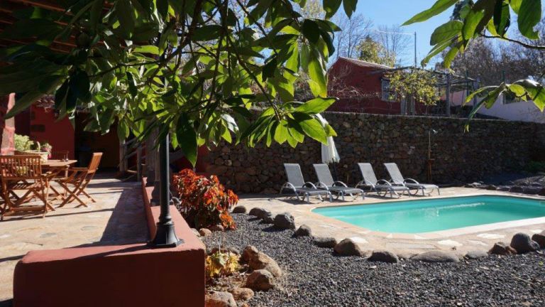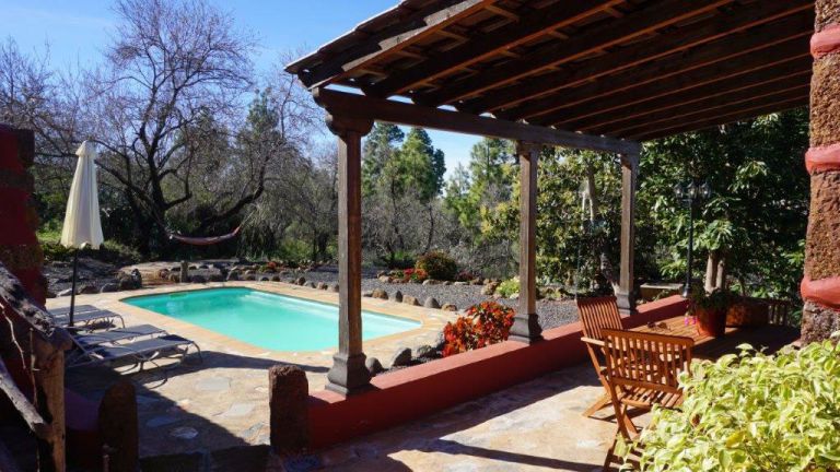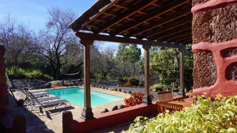 | Das gesamte Fincagelände umfaßt 12.700 qm, so dass Sie schon auf dem Gelände kleine Spaziergänge unternehmen und wunderschöne Plätze mit herrlichem Meerblick entdecken können. Der ungefähr 100 Jahre alte Familienbesitz ist von den Besitzern liebevoll renoviert worden. Das Haus besitzt den Charme des antiken kanarischen Baustils gepaart mit modernem Komfort. Der windgeschützte Aussenpool und die Hängematte zwischen den Bäumen laden Sie ein, die Seele baumeln zu lassen. Direkt am Haus befindet sich eine überdachte Terrasse mit einem gemütlichen Esstisch und Stühlen. |