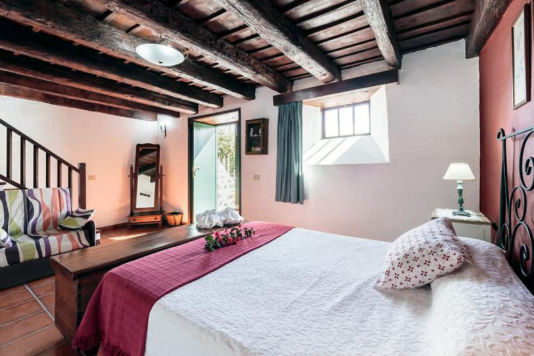 | Im Erdgeschoss befinden sich zwei Doppelschlafzimmer mit je einem Bad und direktem Zugang zum Garten. Jedes Schlafzimmer verfügt über ein zusätzliches Einzelbett. | ||