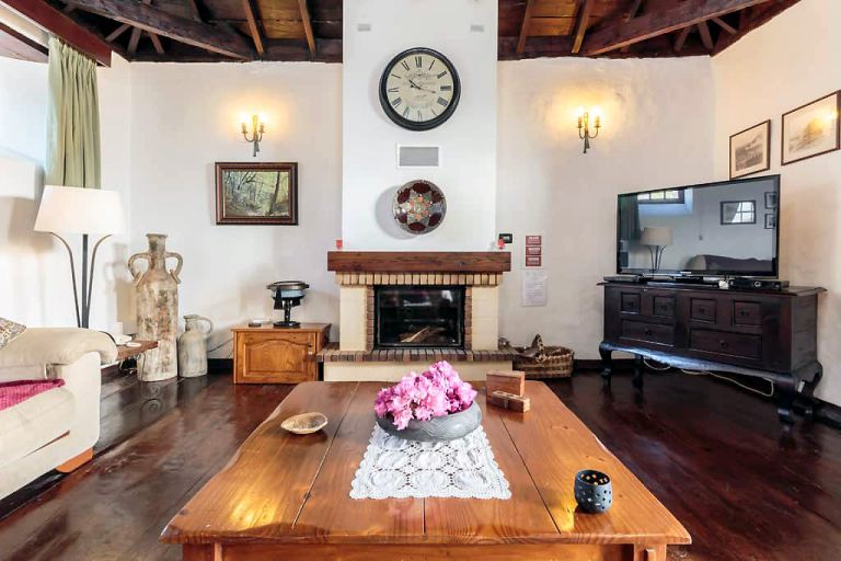 | Im oberen Bereich befinden sich ein geräumiges Wohnzimmer sowie der Essbereich mit integrierter Küche.Das dunkle Teakholz der Fenster und Türen, der Dielen und der Decke bilden vereint einen schönen Kontrast zu den weiß getünchten Mauern. Dieser Bereich vereint die alte rustikale Atmosphäre mit moderner Behaglichkeit und Ausstattung. |