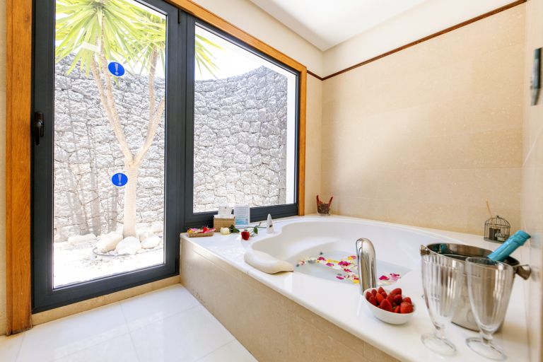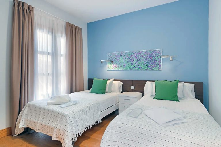 | Zwei der drei modernen Schlafzimmer verfügen über je zwei Einzelbetten, das Hauptschlafzimmer hingegen über ein Doppelbett sowie einem eigenen Bad mit Hydromassage-Dusche, einer SPA-Badewanne und direktem Zugang zur Terrasse. | ||