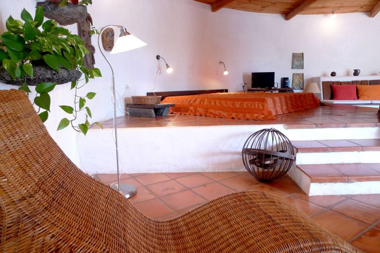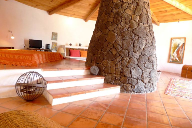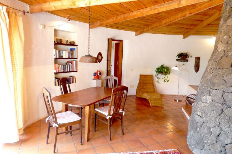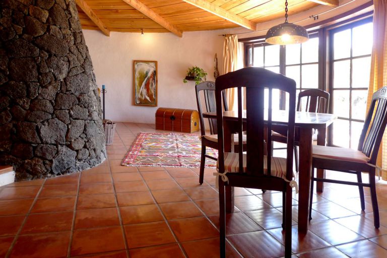 | Besonders eindrucksvoll ist der Blick auf den etwa 550 Meter hohen Risco de Famara, der in der Abendsonne in rötlichen Farbtönen leuchtet. Das an das Haupthaus angebaute Ferienhaus ist mit ca. 87 qm für 2 Personen gut geeignet. |