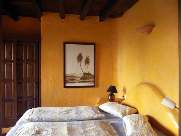 | Die Waschmaschine und ein Trockner befinden sich in einem separaten Raum. Das Ferienhaus verfügt über zwei Schlafzimmer und zwei Badezimmer, eines davon en suite. Für eine gemütliche Atmosphäre sorgen unter anderem handgefertigte Beleuchtungskörper, zahlreiche Pflanzen, Teppiche und inseltypische Bilder. | ||
