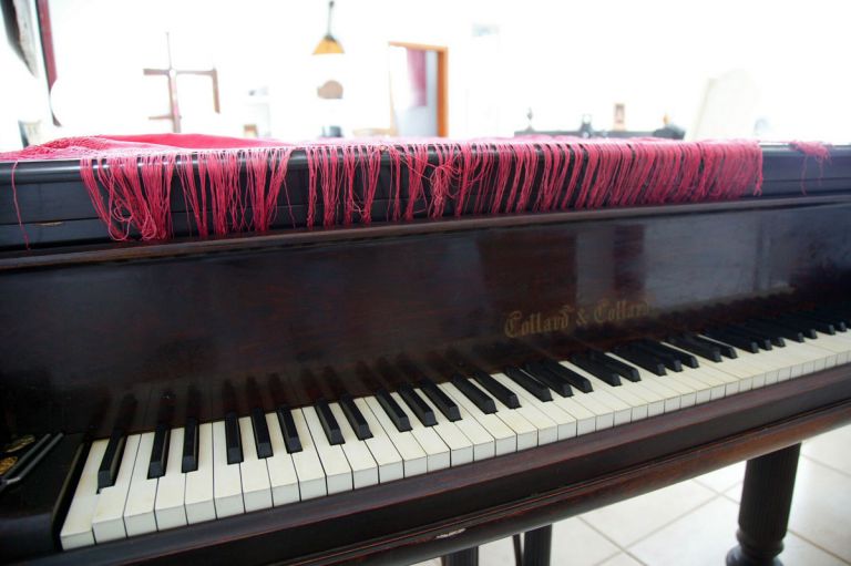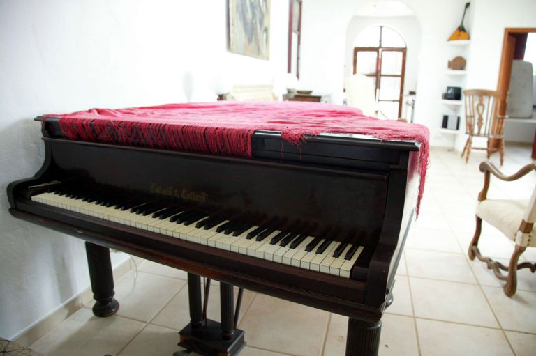 | Darüber hinaus gibt es ein kleines Klavier und einen sehr schönen großen Holzesstsich. | |||||