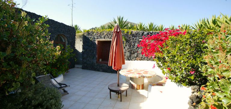 | Das Ferienhaus lieg in einem Naturschutzgebiet auf einem fünf Morgen großen Naturgelände mit Feigenbäumen, die in der vulkanischen Asche sehr gut gedeihen. | |||||