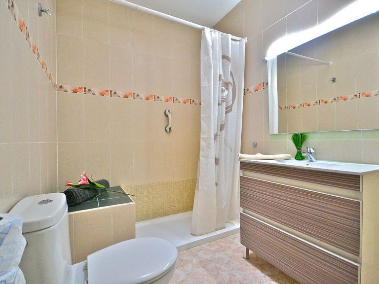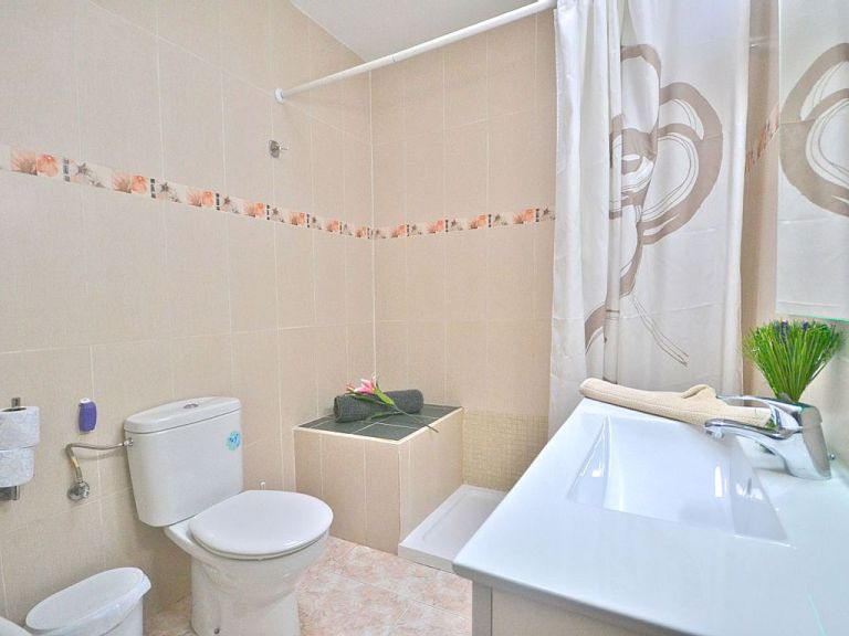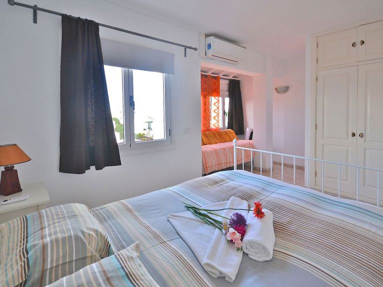 | Das Schlafzimmer mit einem Doppelbett und Einbauschrank ist mit einer Klimaanlage versehen. Das Badezimmer verfügt über eine Dusche, Waschbecken, WC und Bidet. | |||||