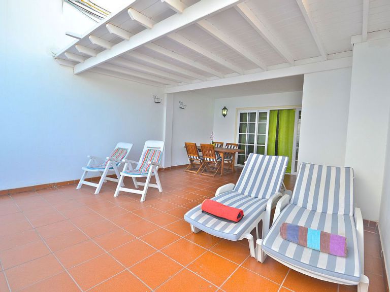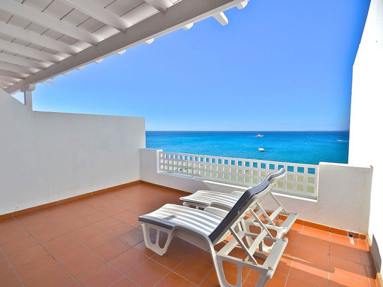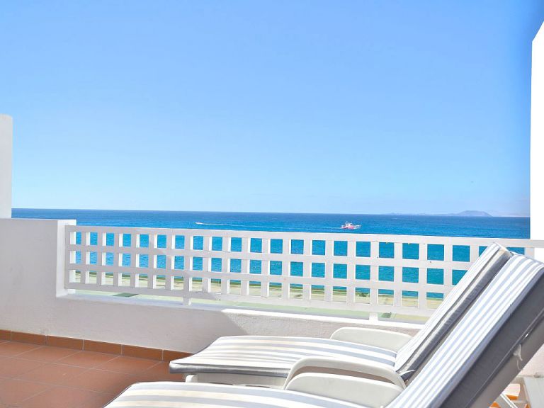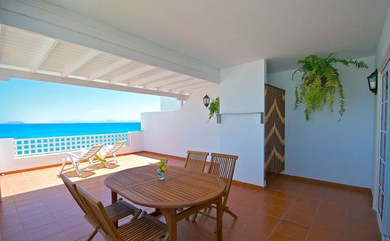| Die Ferienwohnung A liegt direkt am Strand von Playa Blanca. Daher genießen Sie von der ca. 40 qm großen Terrasse einen herrlichen Meerblick. Im hinteren Bereich ist die Terrasse überdacht und bietet somit ein schattigen Essplatz im Freien. | |||||