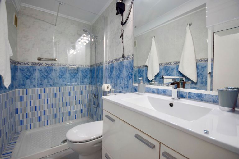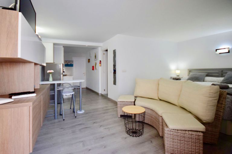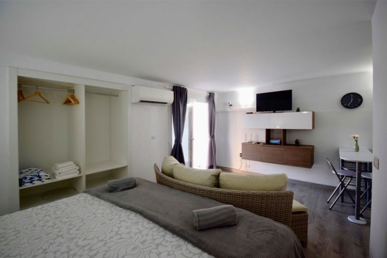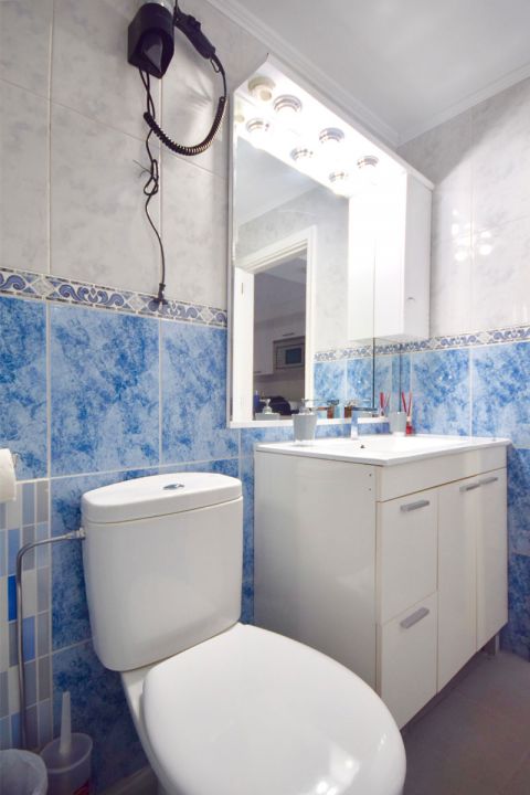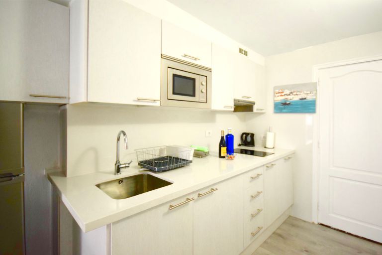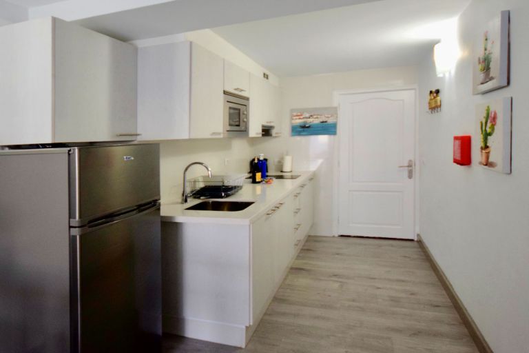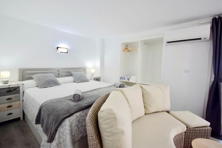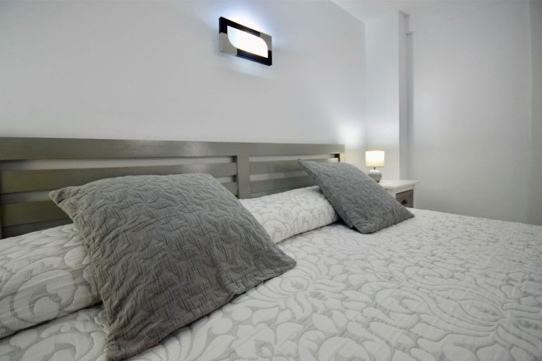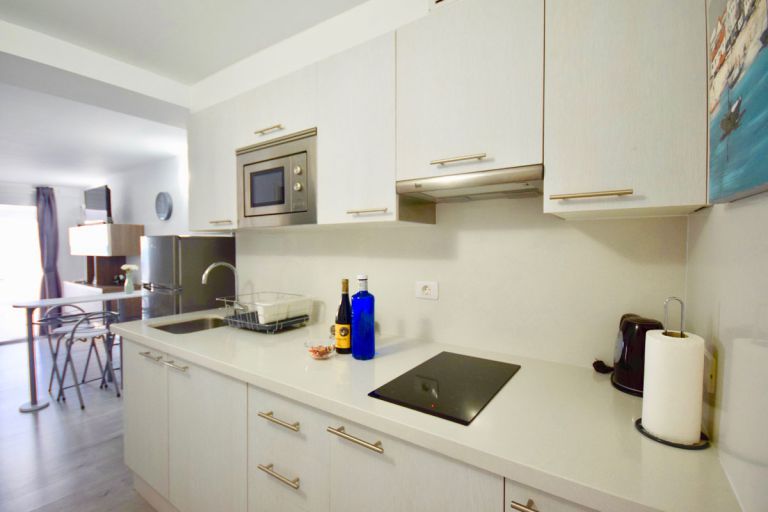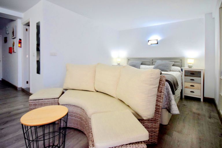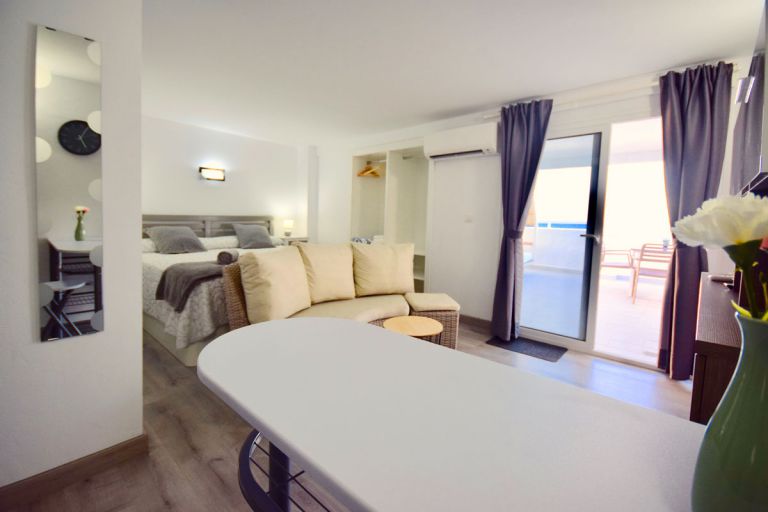 | Sie verfügt über einen kombinierten Wohnschlafraum mit einer gemütlichen Couch mit Tisch, SAT-TV mit Spanischen und Englischen, ggf. auch Deutschen Programmen, DVD-Player und Klimaanlage. Darüber hinaus gibt es ein separates Duschbad. Die Küche ist praktisch und gut ausgestattet. Sie verfügt über eine Kühlgefrierkombination, Cerankochfeld, Mikrowelle, Toaster, Wasserkocher und Waschmaschine. Der Internetzugang über Wlan ist kostenlos. |
