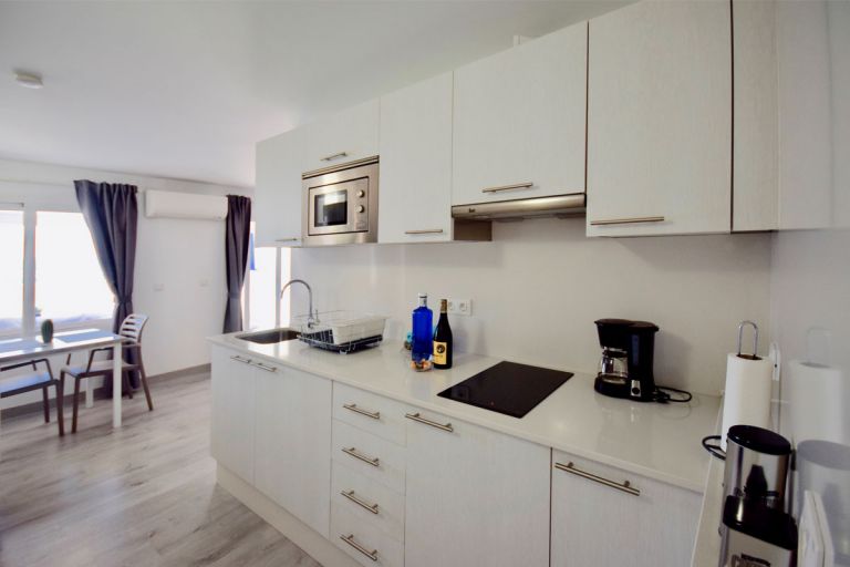 | Die Ferienwohnugn bietet einen kombinierten Wohnschlafraum mit einem einer gemütlichen Couch mit Tisch, SAT-TV mit Spanischen und Englischen, ggf. auch Deutschen Programmen, DVD-Player und Klimaanlage. Darüber hinaus gibt es ein separates Duschbad. Die Küche ist praktisch und gut ausgestattet. Sie verfügt über eine Kühlgefrierkombination, Cerankochfeld, Mikrowelle, Toaster, Wasserkocher und Waschmaschine. Der Internetzugang über Wlan ist kostenlos. |