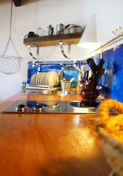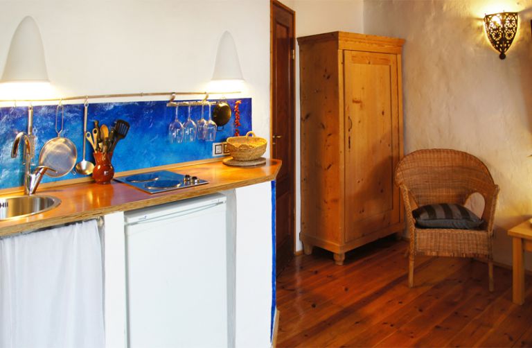 | Die außergewöhnlich eingerichtete Ferienwohnung ist mit knapp 30 qm Wohnfläche für 2 Personen geeignet und besteht aus einem großen Wohnraum mit einem offenen Schlafbereich mit einem Doppelbett und KLeiderschrank und einer kleinen integrierten Küche. | |||||