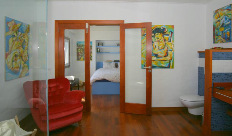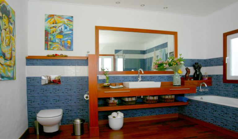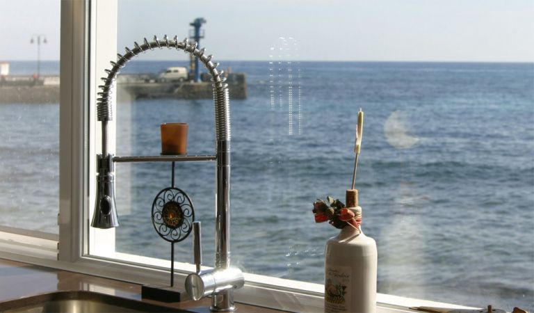 | Die Wohnung für 2 Personen verfügt über ein Schlafzimmer mit Französischem Bett (1,30 m) und ein sich direkt anschleißendes, geräumiges Badezimmer mit direktem Meerblick. Der Wohnraum mit seiner offenen Küche ist sehr behaglich und elegant eingerichtet. Der Eigentümer lebte bisher selbst in dieser Wohnung, dies spiegelt sich natürlich unter anderem im Mobiliar wieder. Der Wohnküchenbereich ist sehr individuell gestaltet und lädt dazu ein, hier unvergessliche Urlaubstage zu verleben. |